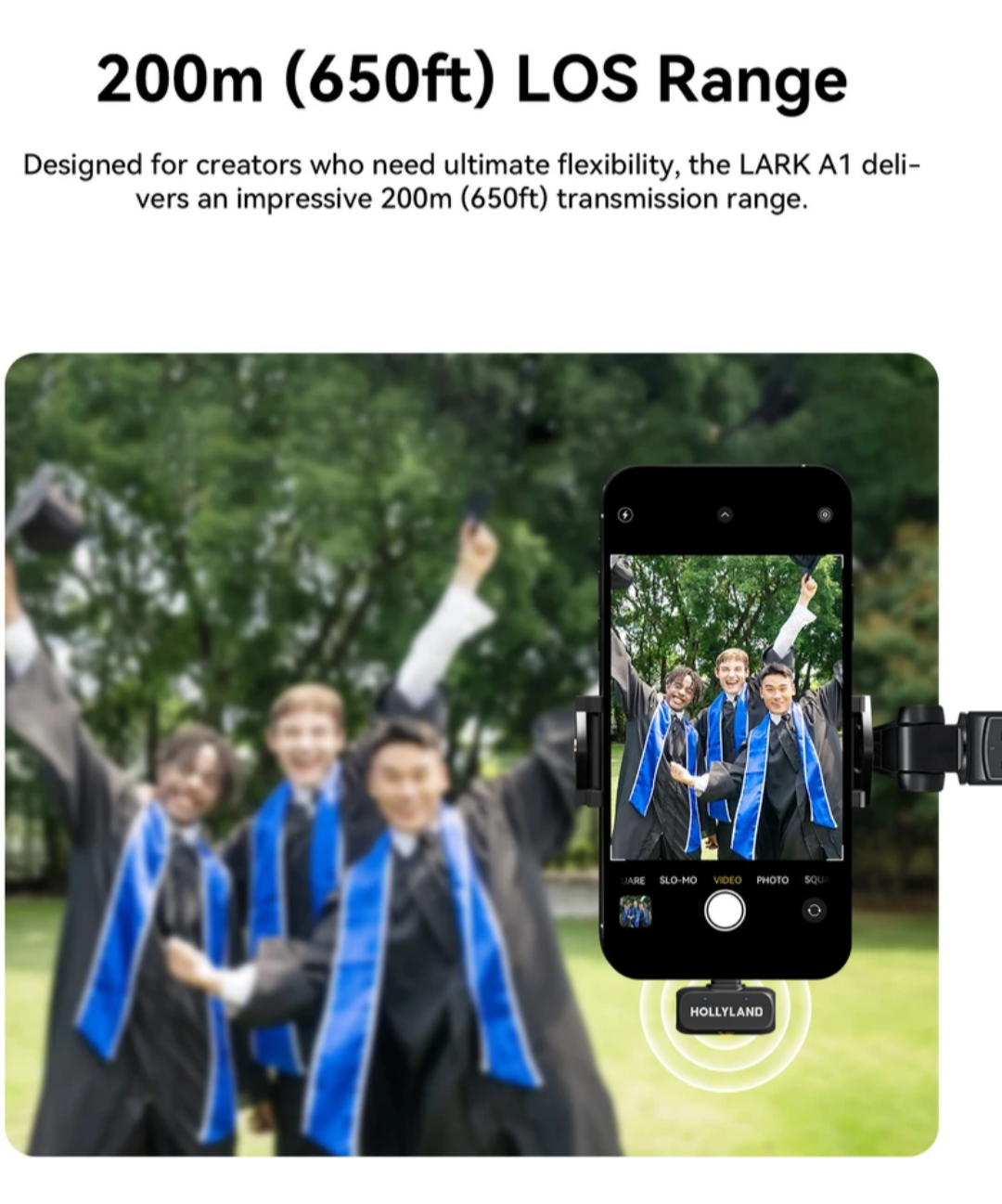 【200m (650ft) Wireless Range】Unlike other wireless microphones, Lark A1 outperforms with 200m(650ft) range using 2.4GHz anti-interference tech. Enjoy stable, low-latency transmission for obstacle-free movement during video recordings.