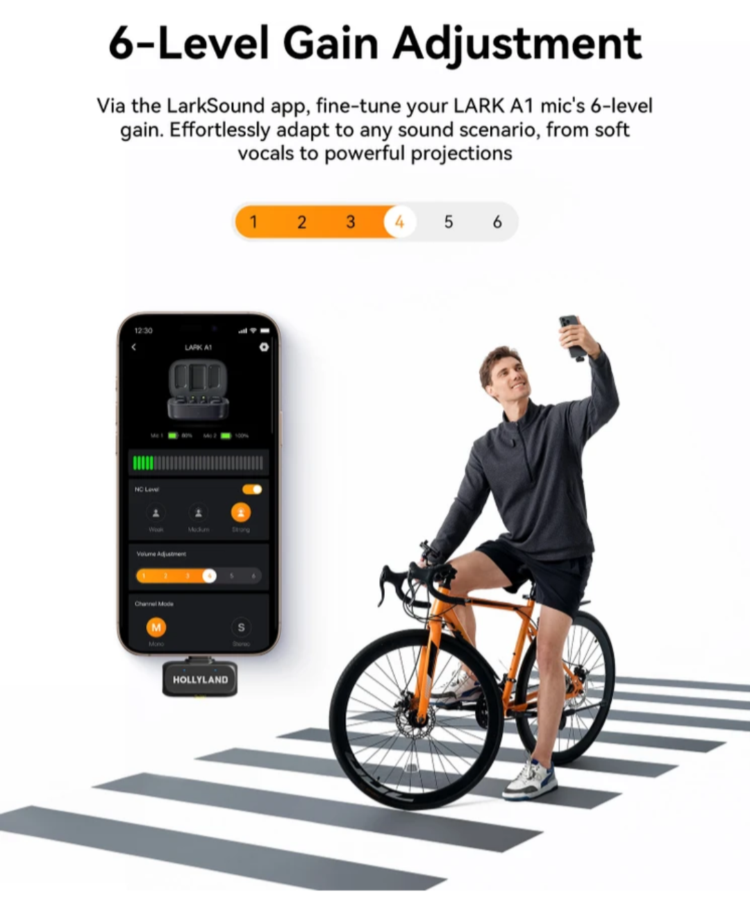 【6-Level Gain Control via App】LARK A1 wireless microphone system delivers powerful 6-level gain adjustment via LarkSound app for precise sensitivity control. Effortlessly capture any sound intensity—from whispers to screams—at perfect volume levels across all scenarios. Ideal for diverse sound collection needs.