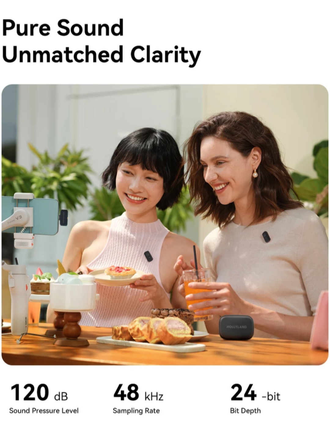 【48kHz/24-bit Studio-Grade Wireless Microphone】Versus ordinary mics, our 48kHz/24-bit microphone captures richer vocal details and superior fidelity. With 120dB SPL handling deep lows to crisp highs, it delivers studio-grade audio anywhere. Ideal for vloggers, streamers, and content creators seeking cinematic sound.