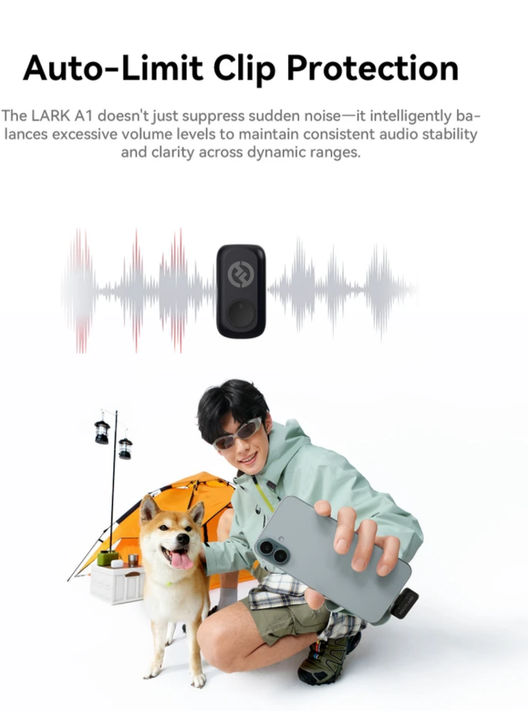 【3-Level Intelligent Noise Cancellation】Lark A1 wireless mic features a pro-grade noise canceling chip with 3-level adjustment (Weak/Medium/Strong) meets your need to cancel any noise. Captures crystal-clear audio anywhere—perfect for outdoor records, live streams, podcasts and interviews.